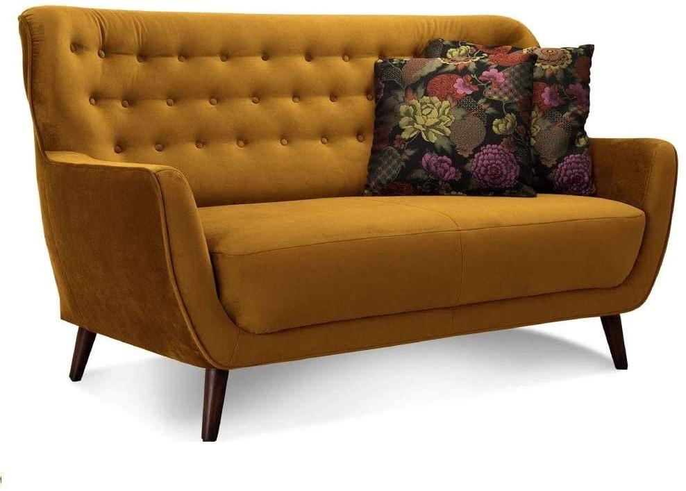 CAVADORE 2-Sitzer-Sofa Abby / Retro-Couch mit Samtbezug und Knopfheftung / 153 x 89 x 88 / Samtoptikgold