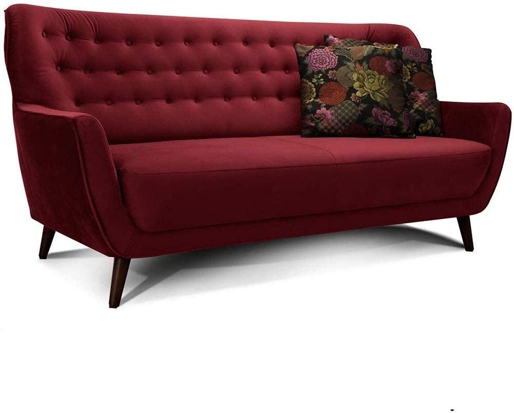 | Name | CAVADORE 3-Sitzer-Sofa Abby / Retro-Couch im Samt-Look mit Knopfheftung / 183 x 89 x 88 / Samtoptik, rot |