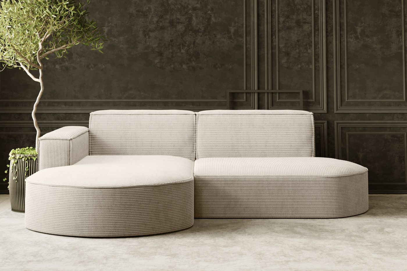 Das stilvolle Ecksofa MODENA STUDIO L bietet Ihnen eine komfortable Umgebung für entspannte Stunden mit der Familie. Hergestellt aus stabilen Holzwerkstoffen, garantiert es Langlebigkeit und hohe Qualität. Die gut gepolsterte Sitzfläche passt sich Ihrer Figur an und bleibt formbeständig. Mit einer starken Konstruktion aus dickem Weichholz und hochwertiger Spanplatte sowie den strapazierfähigen Stoffen Poso und Neve ist dieses Möbelstück ein echter Blickfang in jedem Wohnraum. **Highlights** - Hochwertige Materialien für Langlebigkeit - Formbeständige und bequeme Sitzfläche - Strapazierfähige Stoffe Poso und Neve - Zeitloses Design für jeden Einrichtungsstil - Starke Konstruktion aus dickem Weichholz **Produkteigenschaften** - Abmessungen: - Breite: 236 cm - Tiefe: 165 cm - Höhe: 78 cm - Verwendung von gewellten Federn für zusätzlichen Komfort - Poso-Stoff mit charakteristischer Rippenstruktur, weich und dreidimensional - NEVE-Stoff: robuster, langlebiger Stoff in gedeckten Farben, leicht zu pflegen und zu reinigen