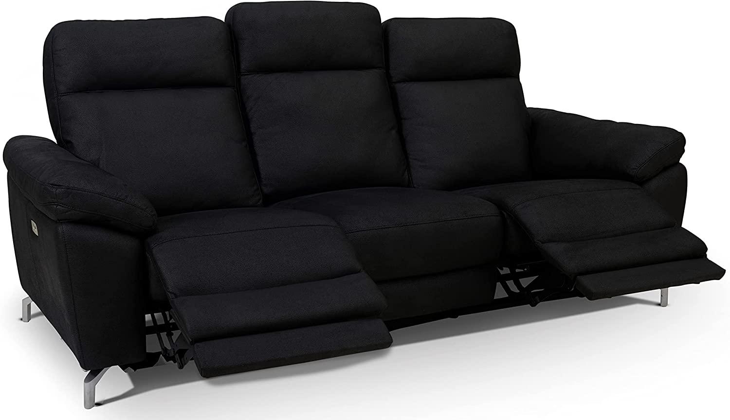 Selesta 3-Sitzer Sofa – mit Elektrische RelaxfunktionUSB - Stoffbezug Schwarz
