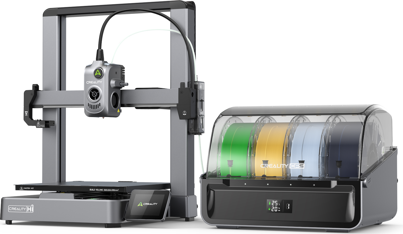 in 3D-DruckerCreality 3D-Drucker Hi Combo CFSx4-System für bis zu 16 Farben, Snap-Away-Stützen, robuste Aluminiumlegierung