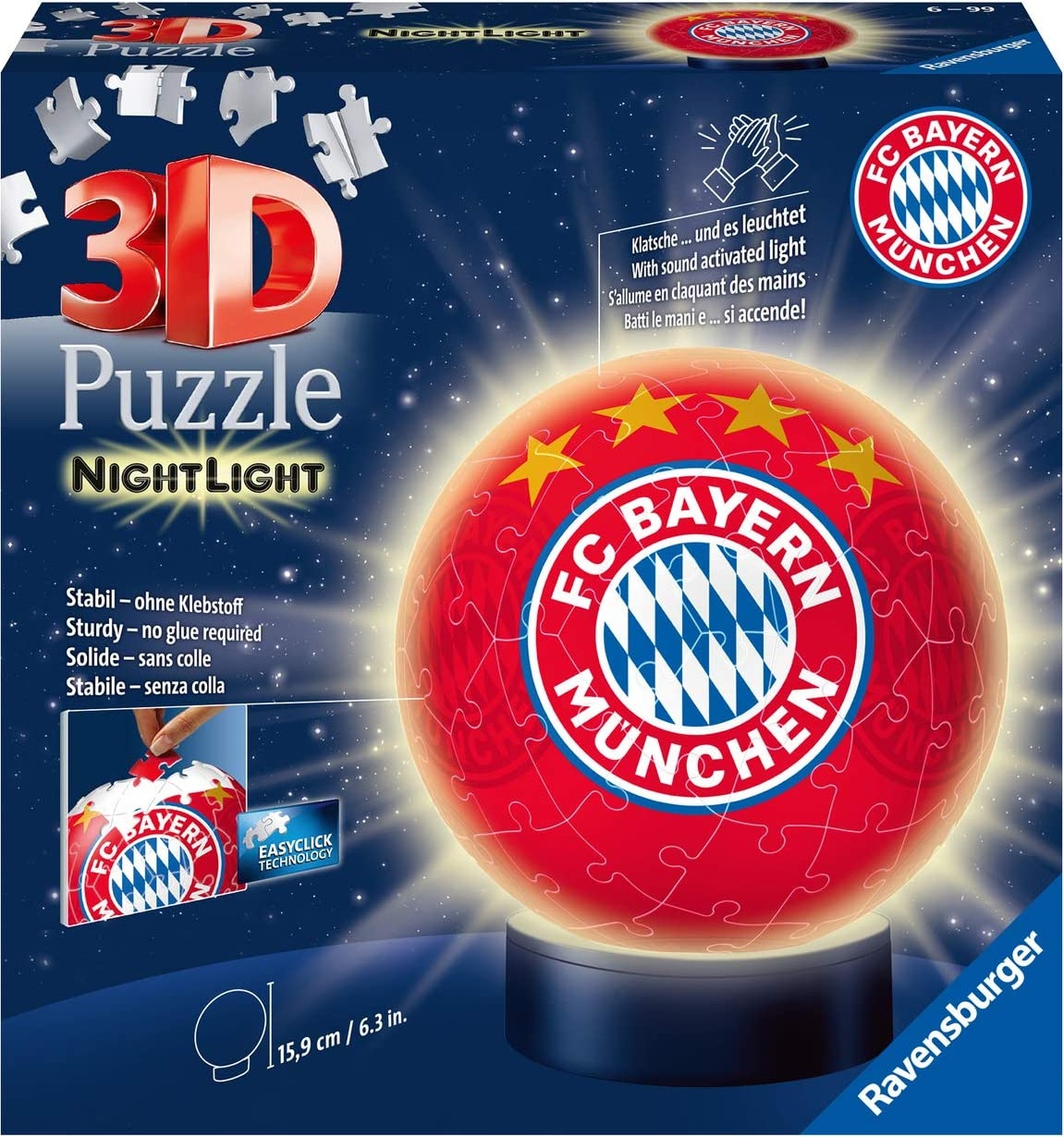 in 3D-PuzzlesRavensburger 3D Puzzle Nachtlicht FC Bayern München - Fanartikel für Kinder ab 6 JahrenLED Nachttischlampe mit Klatsch-Mechanismus, Schlummerlicht
