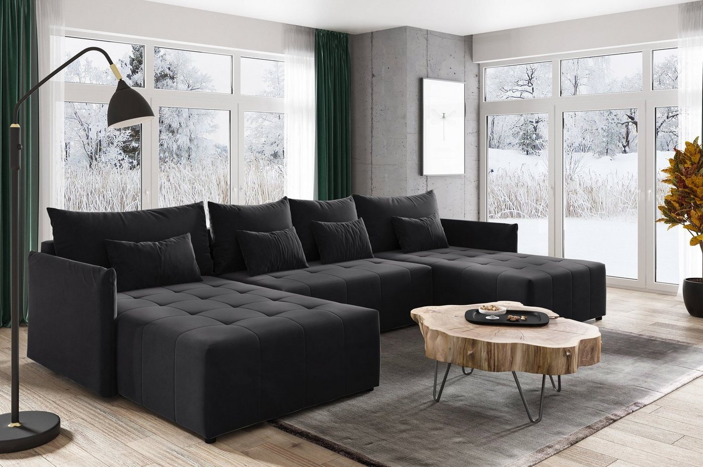 | Name | Wohnlandschaft Leno U mit Schlaffunktion - U-Form Couch, Ecksofa mit Bettkasten, Couchgranitur mit Bettfunktion, Schlafsofa, Big Sofa - Velours Stoff (Schwarz (Kronos 07)) |