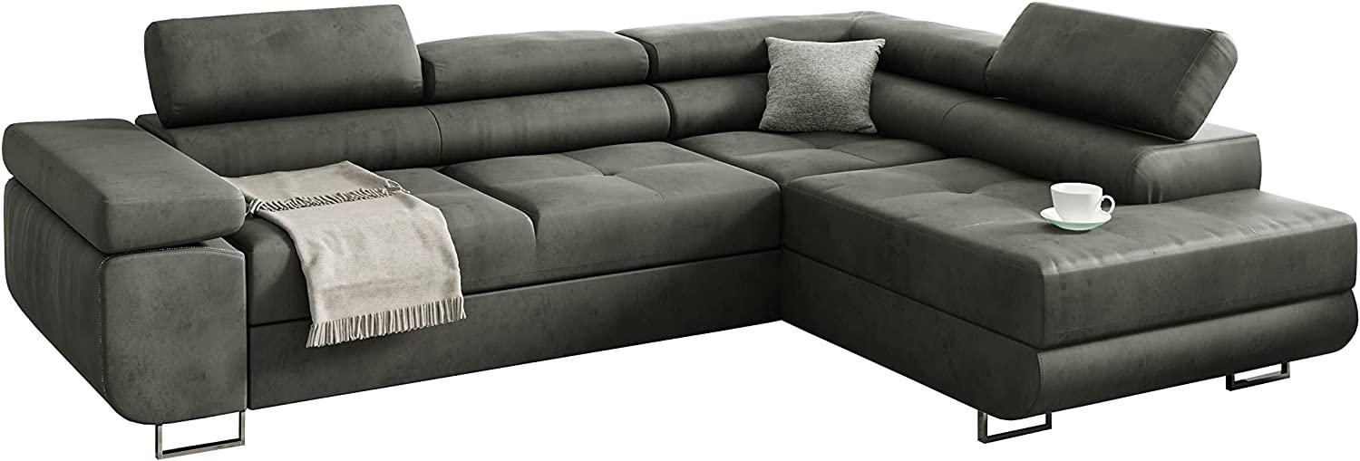 in 4-Sitzer SofasMöbel48 Ecksofa Miami mit SchlaffunktionBig Sofa, Ecksofa mit Bettkästen (Rechte Ottomane, Gute Qualität des Stoffes) (Grey), 272x203, MiamiMon1