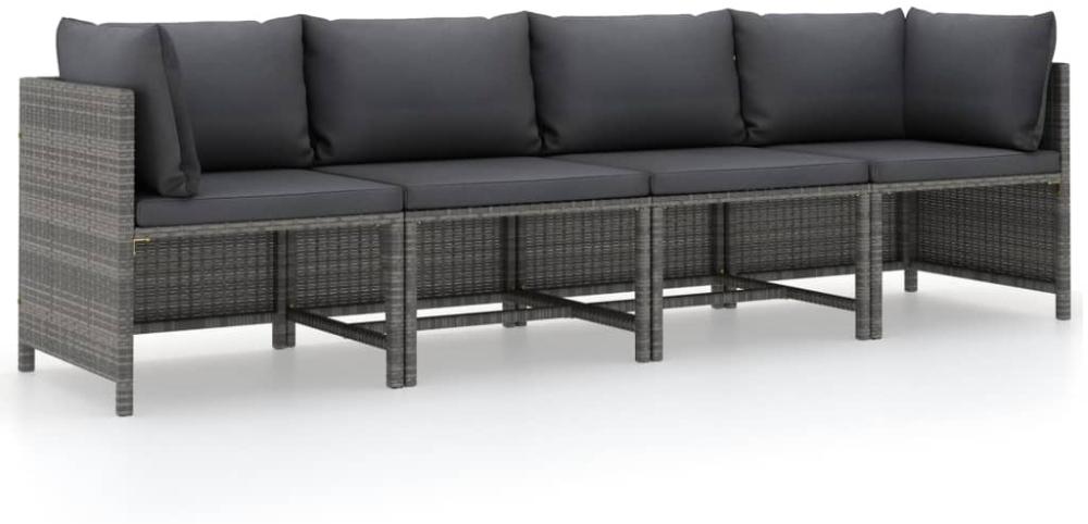 vidaXL 4-Sitzer-Gartensofa mit Kissen Grau Poly Rattan 313501