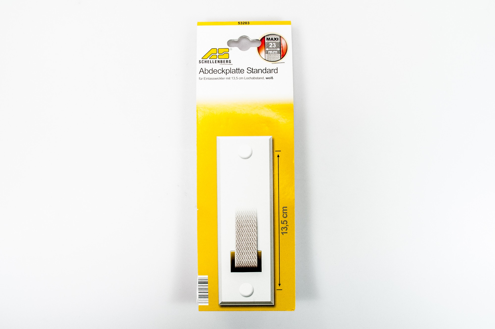 - Die Schellenberg Abdeckplatte Standard ist für Unterputz-Gurtwickler konzipiert und hat einen Lochabstand von 135 mm.
