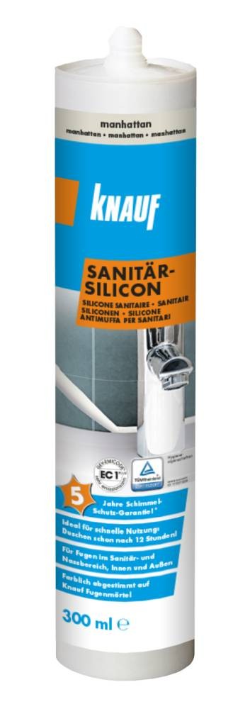 - Das Knauf Sanitär-Silikon manhattan ist ideal für das dauerelastische Verfugen von Eck-, Anschluss- und Wartungsfugen im Sanitärbereich.