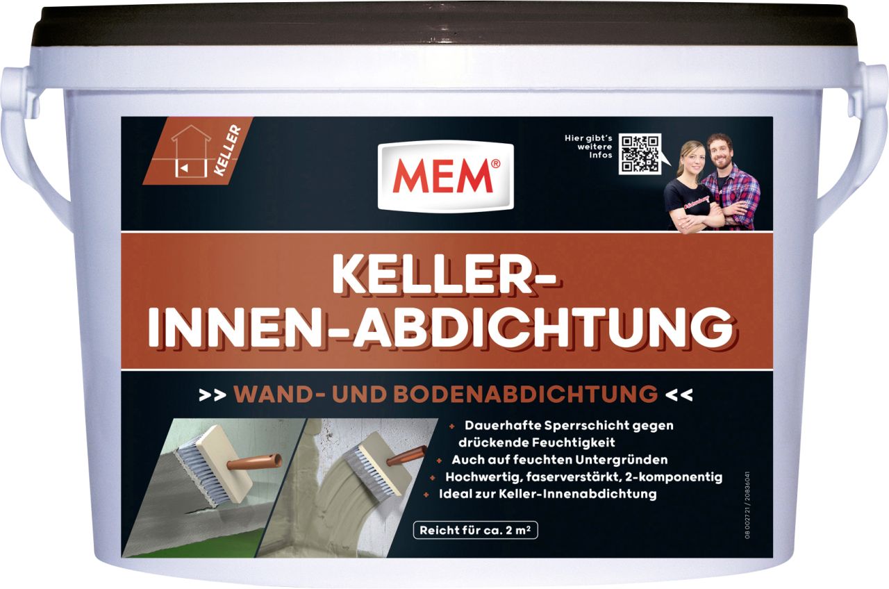 - MEM Keller-Innen-Abdichtung ist eine hochflexible Wand- und Bodenabdichtung, die gegen drückende Feuchtigkeit wirkt.
