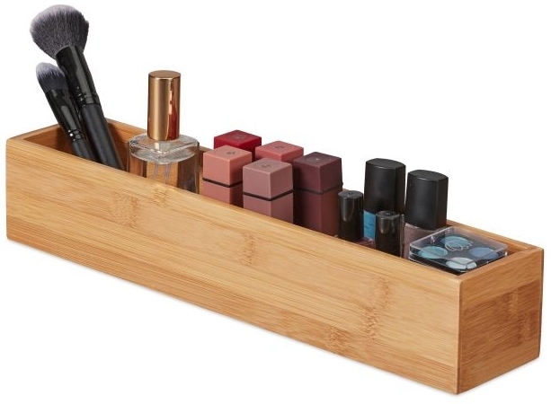 Kleinere Gegenstände sammeln sich schnell an, doch mit der Bambus Box behalten Sie stets den Überblick. Ideal zur Aufbewahrung von Kosmetikartikeln, Büroutensilien oder sogar als Teebox in der Küche. Ihr schmales, längliches Design fügt sich harmonisch in jeden Raum ein und setzt natürliche Akzente. **Highlights** - Flexibel einsetzbar im Haushalt und Büro - Stauraum für Kosmetikartikel und Büroutensilien - Aus hochwertigem Bambus in natürlicher Optik - Längliches Design für platzsparende Aufbewahrung - Setzt warme Akzente im Raum **Produkteigenschaften** - Maße außen H x B x T: ca. 7 x 38 x 8 cm - Maße innen H x B x T: ca. 6,5 x 36,5 x 6,5 cm - Traglast: 2 kg - Gewicht: ca. 420 g - Farbe: Natur **Lieferumfang** - 1x Ordnungsbox - Dekoartikel sind im Lieferumfang nicht enthalten