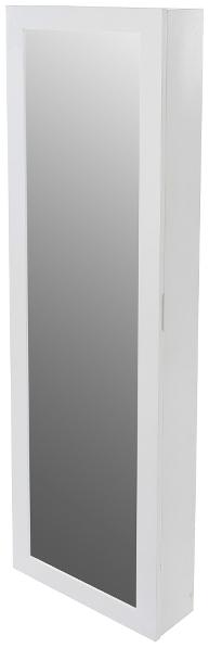 Der Schminkschrank Ariola ist ein stilvolles und funktionales Möbelstück für Ihr Zuhause. Hergestellt aus langlebigem MDF in Weiß, bietet er einen großen Spiegel an der Außenseite der Tür sowie einen kleineren Spiegel im Inneren. Eine herausklappbare Platte ermöglicht das Abstellen von Utensilien, während mehrere Fächer und Haken für eine ordentliche Aufbewahrung sorgen. Der Schminkschrank wird montiert geliefert und ist pflegeleicht. **Highlights** - Großer Spiegel an der Außenseite der Tür - Kleinerer Spiegel im Inneren - Herausklappbare Platte zum Abstellen von Utensilien - Mehrere Fächer und Haken zur Aufbewahrung - Pflegeleichtes und langlebiges Material **Produkteigenschaften** - Maße: Breite ca. 36 cm, Höhe ca. 121 cm, Tiefe ca. 12 cm - Material: MDF - Farbe: Weiß - Gewicht: 12 kg - Zustand: Neu und originalverpackt - Anlieferung: Montiert - Anwendbarkeit: Indoor - Besondere Merkmale: Moderner Stil **Lieferumfang** - Schminkschrank (ohne Dekoration und weiter gezeigte Möbel)