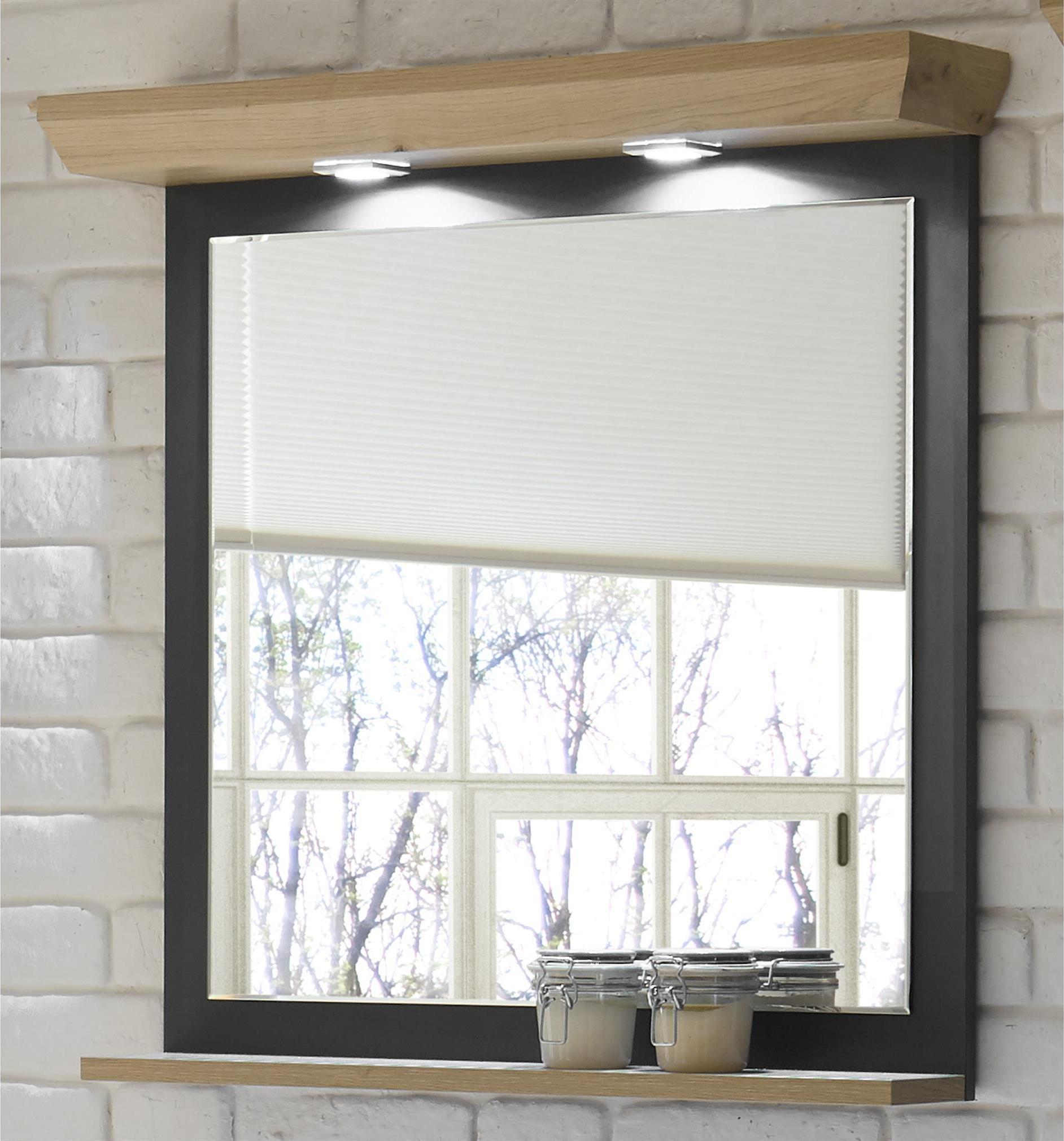 Der Wandspiegel "Marilin" in Anthrazit matt Lack bringt romantisches Landhausflair in Ihr Badezimmer. Mit den Abmessungen 77 x 77 x 16 cm (BxHxT) bietet er ausreichend Stauraum auf einem Ablageboden. Hergestellt aus Spanplatte und Spiegelglas, überzeugt er durch seine langlebige Qualität und die heimelige Optik der Asteiche Nachbildung. **Highlights** - Romantischer Landhausstil - Großer Stauraum mit 1 Ablageboden - Hochwertige Verarbeitung - LED-Unterbauleuchte für helles Licht - Facettenschliff für besonderen Charme **Produkteigenschaften** - Made in Germany - Farbe: Anthrazit matt Lack - Abmessungen: 77 x 77 x 16 cm (BxHxT) - Material: Spanplatte, Spiegelglas - Ablageboden für Badutensilien **Lieferumfang** - Wandspiegel "Marilin" in Anthrazit matt Lack - LED-Unterbauleuchte (2-er Set) - Leicht verständliche Aufbauanleitung