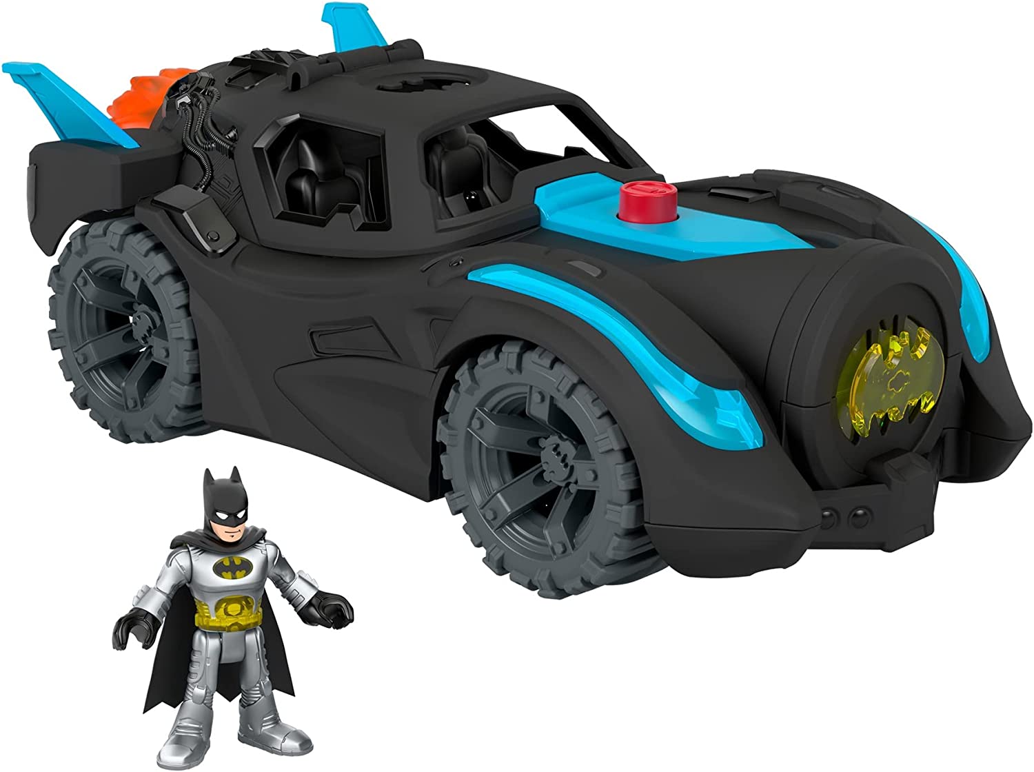- Das Imaginext® DC Super Friends™ Lights & Sounds Batmobile™ von Mattel ist ein schiebbares Fahrzeug, das mit leuchtenden Lichtern und Geräuschen ausgestattet ist, die beim Fahren aktiviert werden.