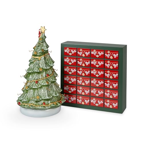 Villeroy & Boch - Christmas Toy'S Memory Adventskalender Set 26 Teilig Mit 24 Porzellanfiguren Inklusive Weihnachtsbaum Zum Aufhängen24 Türchen, Weihnachten, Weihnachtsdeko, Porzellan, Grün-Holzrahmen