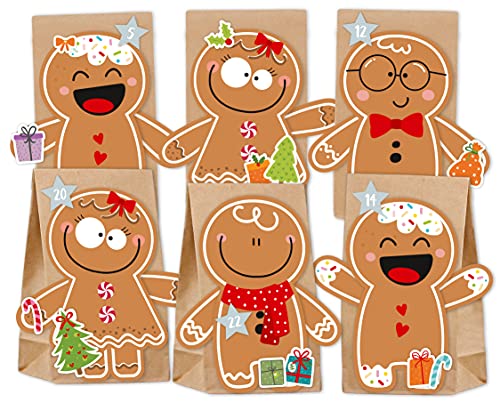 KuschelICH Adventskalender zum Befüllen Lebkuchenfrau & Lebkuchenmann - mit Stickern und Adventskalenderzahlen zum Gestalten und selber Basteln (Lebkuchenmann), braun