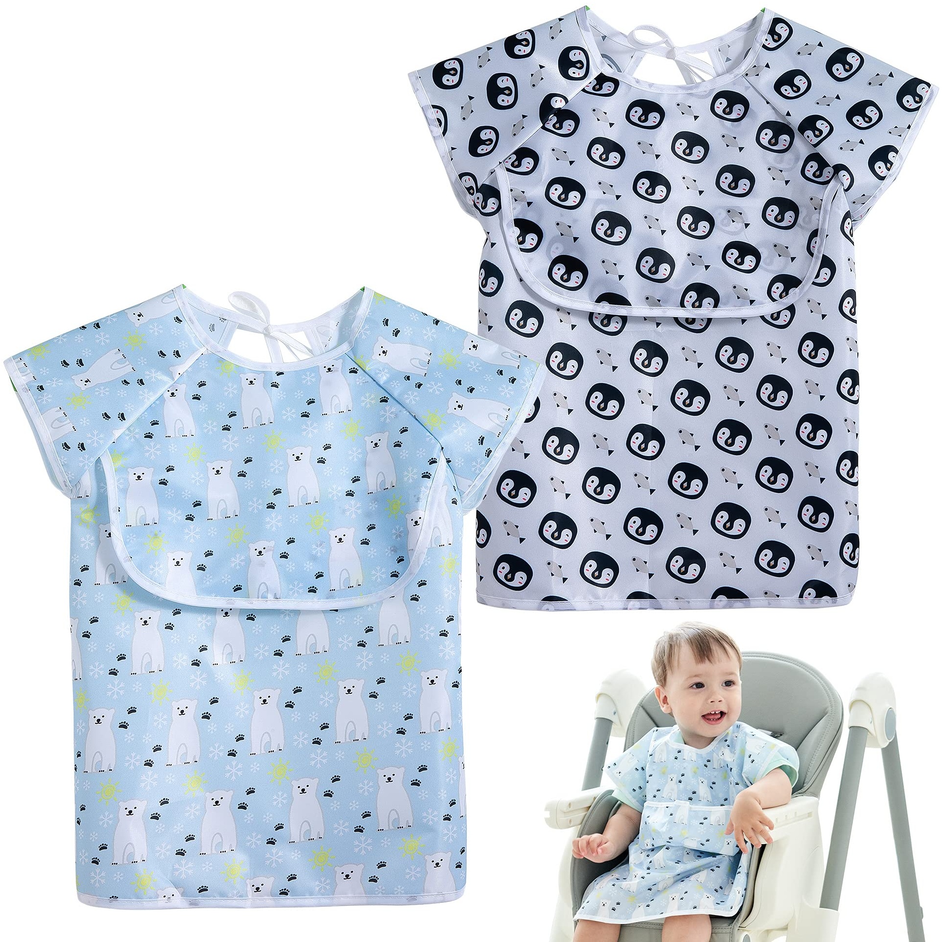 Little Dimsum Baby Lätzchen mit Kurzen Ärmeln 2 StückWasserdichte Lätzchen mit Auffangtasche für Babys und Kleinkinder Kinder von 6-36 Monate