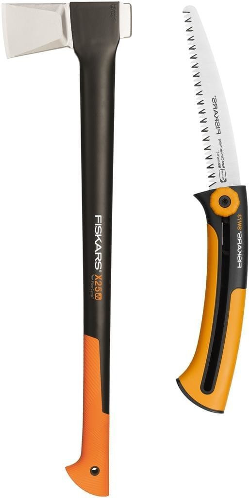 Das Fiskars Set Axt X25 + Säge SW73 ist eine praktische Kombination für alle, die gerne im Garten arbeiten oder Holz hacken. Die Axt ist leicht und effektiv und eignet sich besonders gut für größere Holzstücke. Zusammen mit der passenden Säge können auch kleinere Äste mühelos abgesägt werden.
