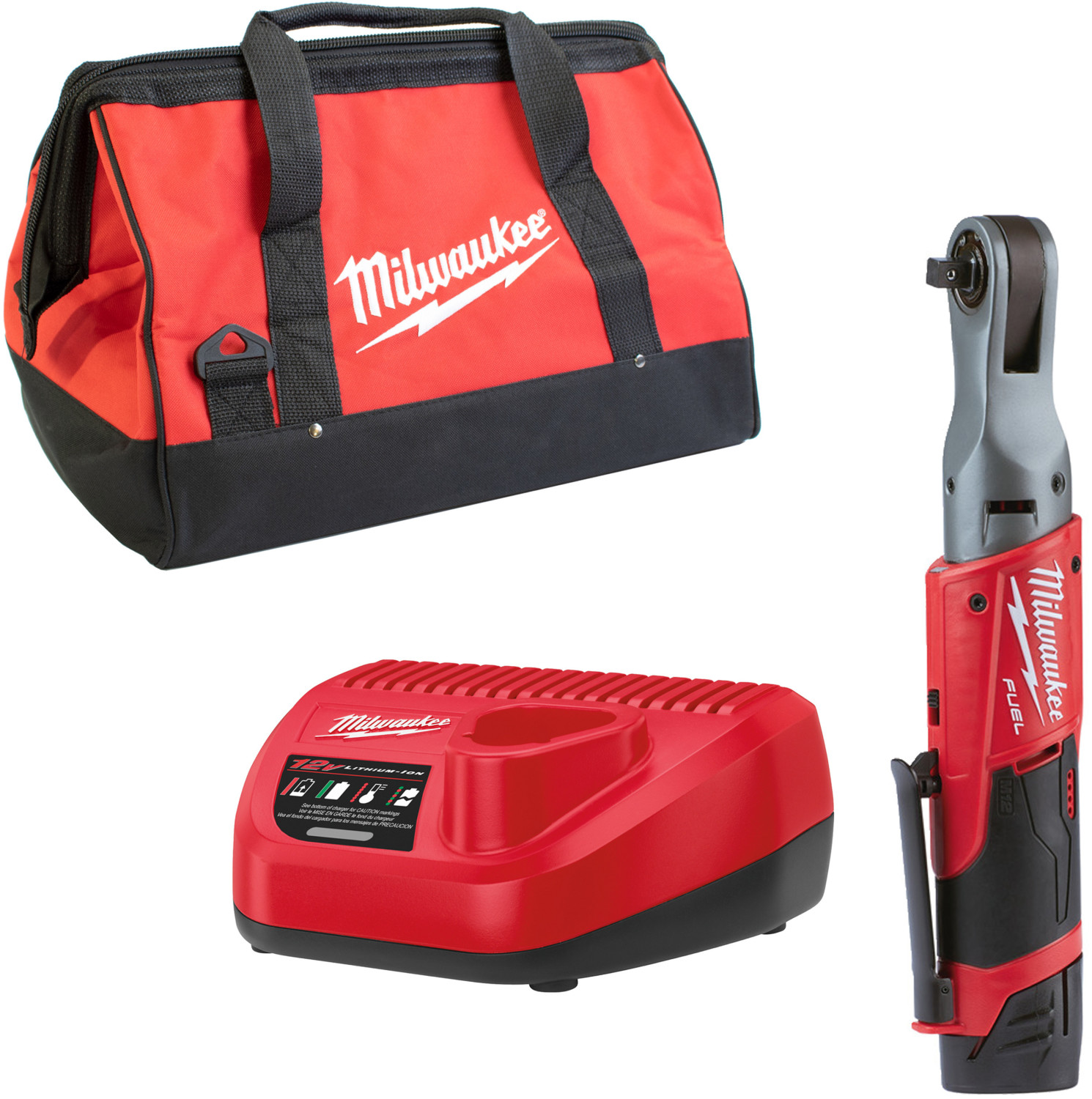 Milwaukee M12FIR38 M12FIR38-201B Akku-Ratschenschrauber (1x Akku 2,0 Ah + Ladegerät + Werkzeugtasche)