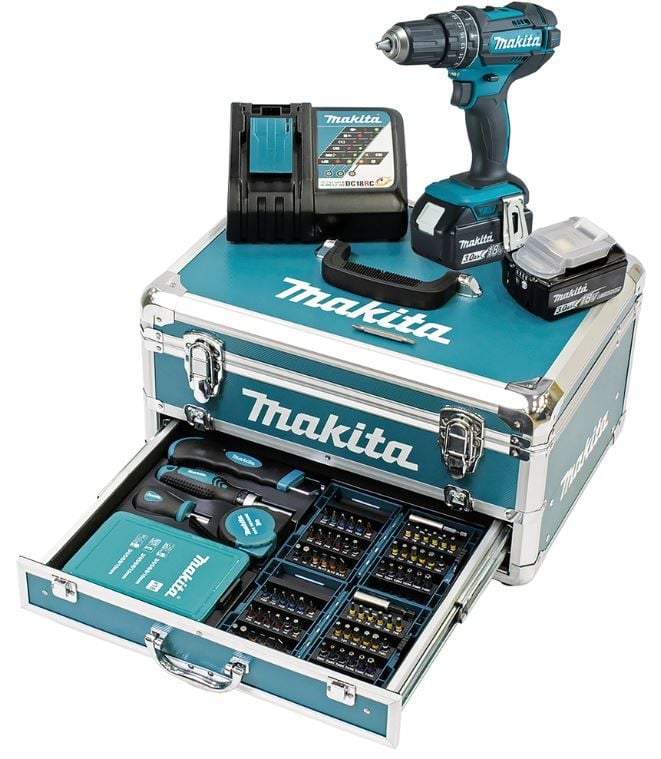 in Akku-SchlagbohrschrauberMakita DHP482RFX9 Akku Schlagbohrschrauber Makita 18V,96-tlg. Zubehör-Set,2 Akkus Ladegerät