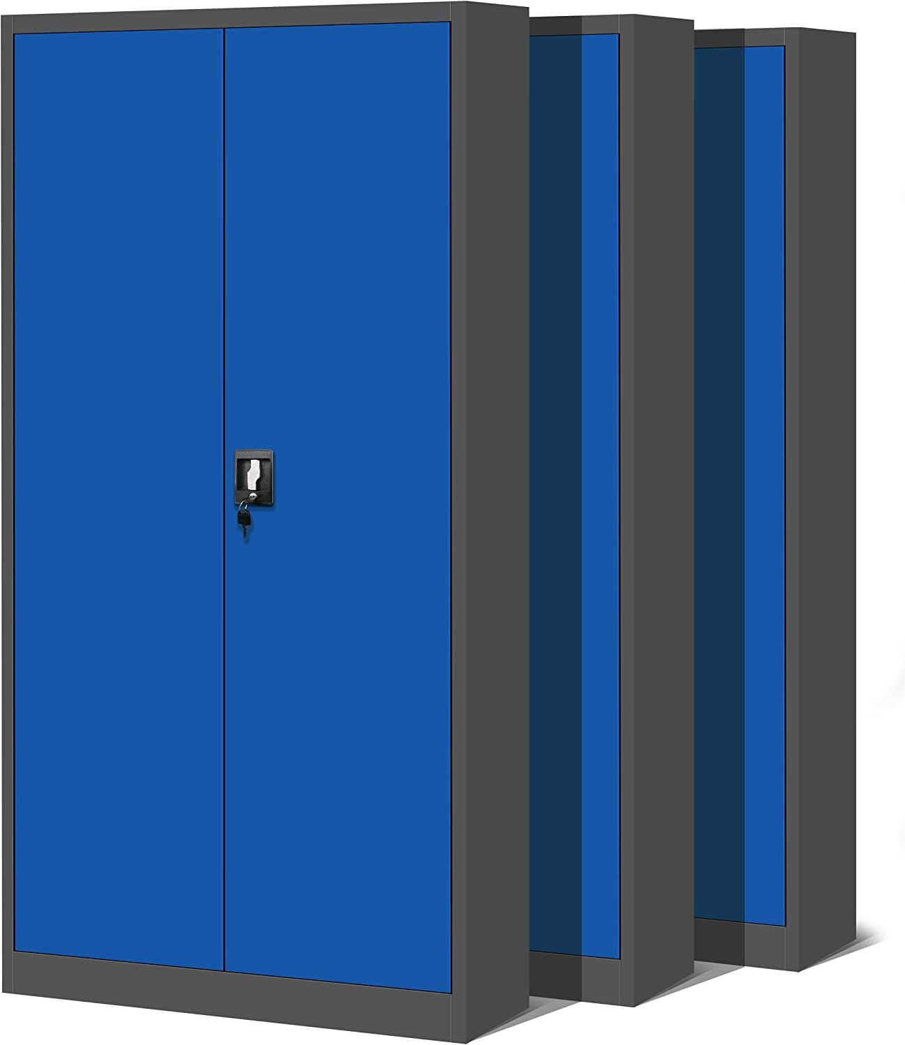in Aktenschränke3er Set Aktenschrank C001H Büroschrank Metallschrank Stahlschrank Werkzeugschrank Stahlblech Pulverbeschichtet Flügeltürschrank Abschließbar 195 x 90 x 40 cm (anthrazit/blau)