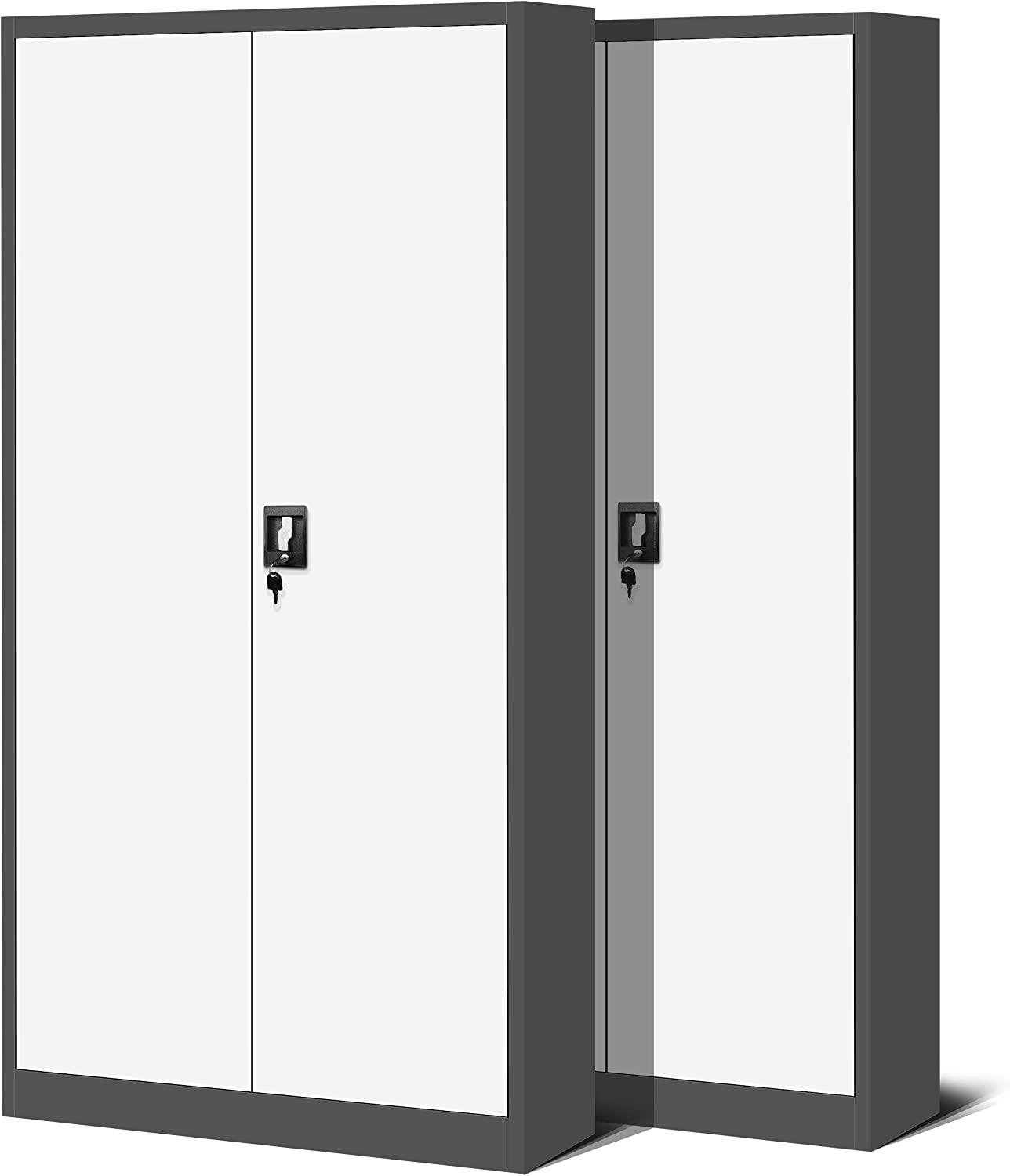 in Aktenschränke2er Set Aktenschrank C001H Büroschrank Metallschrank Stahlschrank Werkzeugschrank Stahlblech Pulverbeschichtet Flügeltürschrank Abschließbar 195 x 90 x 40 cm (anthrazit/weiß)