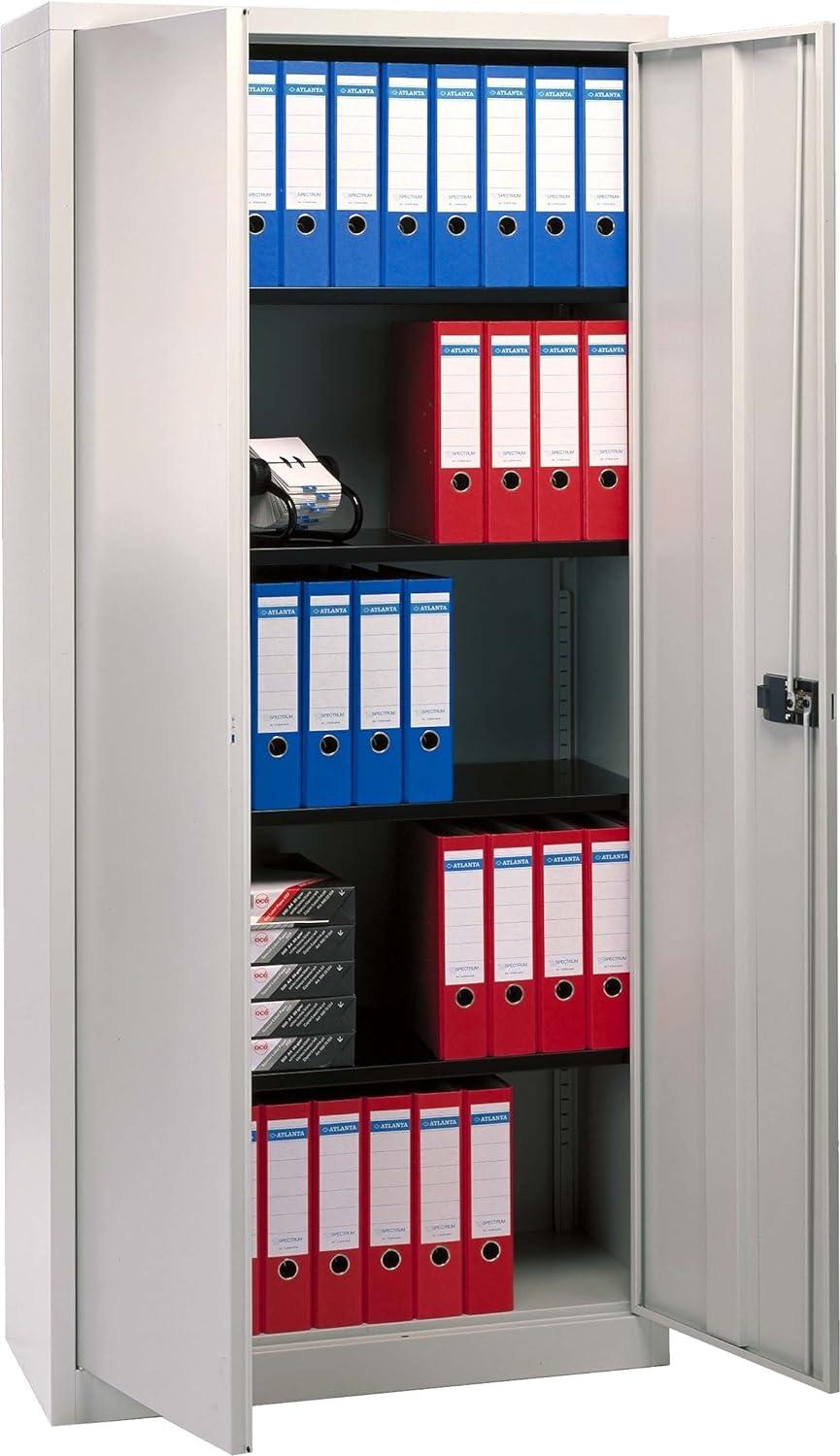 - Der BISLEY 'Universal' Flügeltürenschrank bietet mit seinen 4 Fachböden eine hohe Tragkraft von jeweils 70 kg, ideal für die Aufbewahrung von Arbeitsutensilien.
