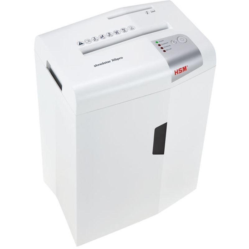 - Der HSM shredstar X6pro Aktenvernichter bietet eine Sicherheitsstufe P-5 mit einem Partikelschnitt von 2 x 15 mm, der eine hohe Unkenntlichkeit der geschredderten Dokumente gewährleistet.