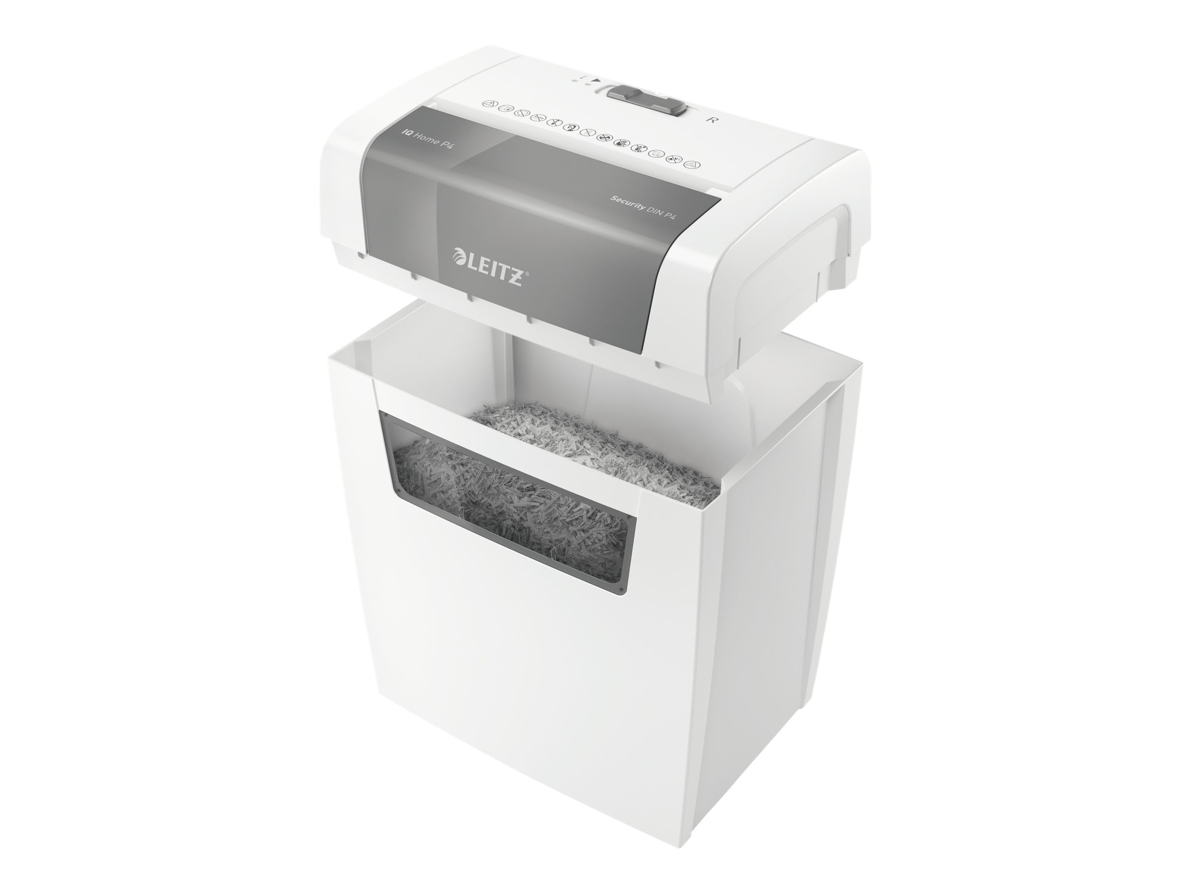 - Der LEITZ IQ Home Aktenvernichter mit Partikelschnitt P-4 schreddert bis zu 6 Blatt Papier mit einem Gewicht von 80 g/qm in kleinste Partikel von 4 x 28 mm.