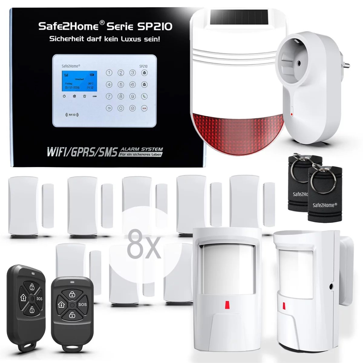 Safe2Home® Funk Alarmanlagen Großes Set SP210 mit Sabotageschutz – WIFI / GSM / SMS Alarmierung - Lichtsteuerung
