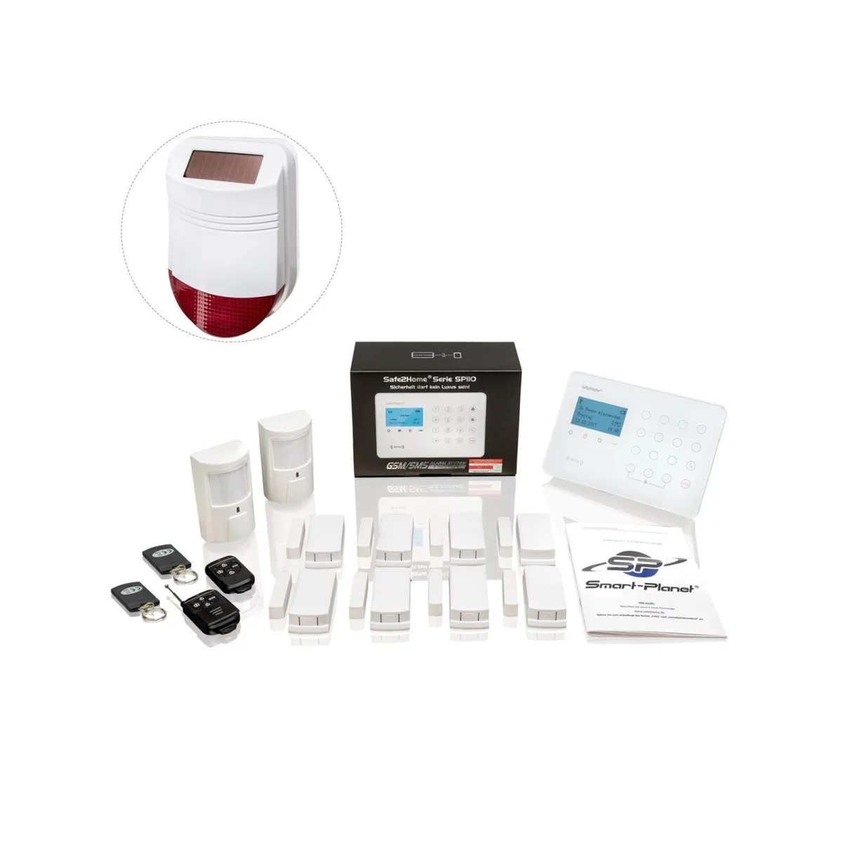 in AlarmanlagenSafe2Home® Funk Alarmanlagen Set SP110 Alarmsystem - Großes Set mit Solar Sirene - Sabotageschutz - deutsch
