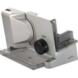 | Sonstiges | ECO-Motor, made in Germany | Supermobil durch Faltfunktion, Höhe eingeklappt nur 8 cm. | Kompakte Gerätemaße von 20,2 x 33,1 x 10,1 cm. | klappbar, Vollmetallausführung, Wellenschliffmesser aus rostfreiem Edelstahl, 2-Finger-Einschaltsystem, Moment- oder Dauerbetrieb, 65 Watt Eco-Motor | - | Energiesparmotor mit 170 Watt, rutschfester Standfuß, kompakte Bauweise, Schnittstärken einstellbar von 0 bis 2 cm, inklusive Schinkenmesser. | Selbstschärfende Klingen | Made in Germany | Abnehmbarer Edelstahlschlitten, Schlittenführung aus Edelstahl | Sicherheits-Moment- und Dauerschalter. | Supermobil durch Faltfunktion, Höhe eingeklappt nur 8 cm. | ECO-Motor, made in Germany | BPA frei, platzsparend klappbar, mit Sicherheitsschalter, Eco 100 Watt | Schlittenführung aus Edelstahl, Sauggummifüße | Rostfrei, spülmaschinengeeignet, inkl. Aufbewahrungsbox | kippbar um 30° | Motorgehäuse aus Alu-Druckguss, geneigter Auflagetisch mit Edelstahleinlage, Restehalter mit Fingerschutz, Saugfüße für sicheren Stand | Made in Germany | Der Allesschneider ist in einem edlen Eisenglimmergrau gehalten und verfügt über eine hygienische Glasbodenplatte. | Aluminiumschlitten mit extrabreiter Auflage und veredelter Oberfläche, abnehmbar Messerabdeckplatte, Kippschneider 30° | Beleuchtete Einstellskala, beleuchteter Schneidebereich, zusätzliche Schnittstärkenfeineinstellung im Bereich 0 - 2 mm |