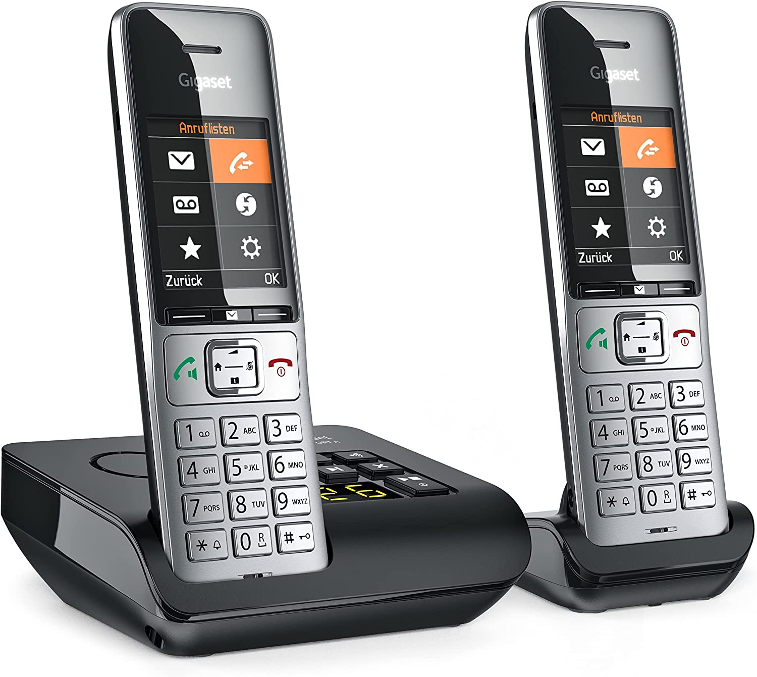 Gigaset COMFORT 500A Duo - 2 MobilteileAnrufbeantworter, Freisprechen, Telefonbuch, 5,8 cm (2,2 Zoll) TFT-Farbdisplay, schwarz, silber