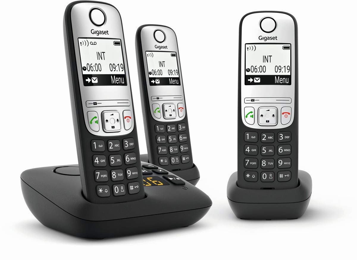 Gigaset A690 A Trio schwarz schnurlos analog (DECT) 3 Mobilteile Anrufbeantworter Display Freisprechen Telefonbuch 100 Einträge