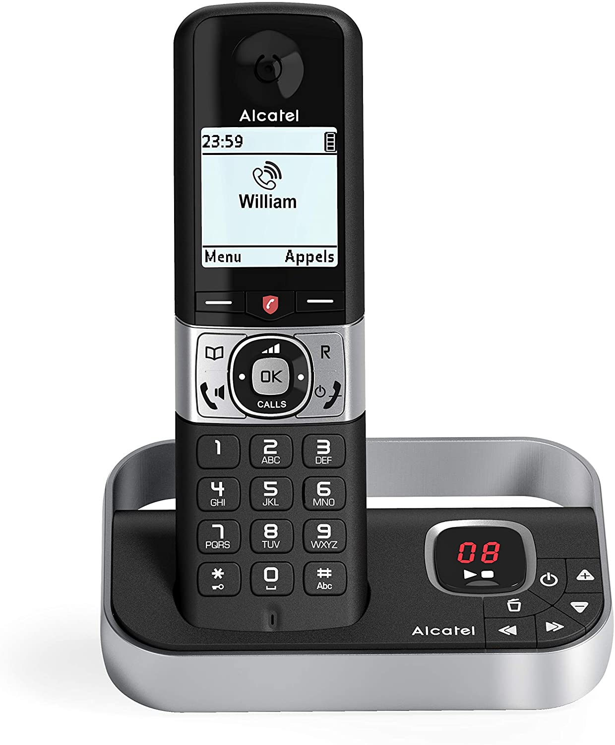 - Das Alcatel F890 Voice ist ein schnurloses Telefon in der Farbe schwarz.