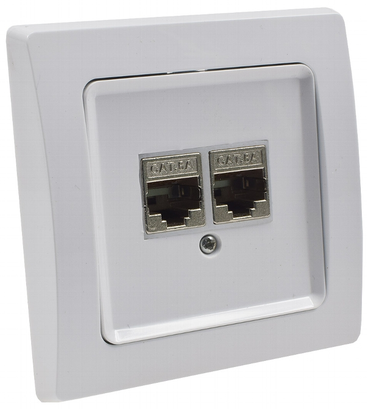 - Die Delphi Netzwerk-Dose ist eine CAT6 Doppeldose, die für Längs- und Quermontage geeignet ist.