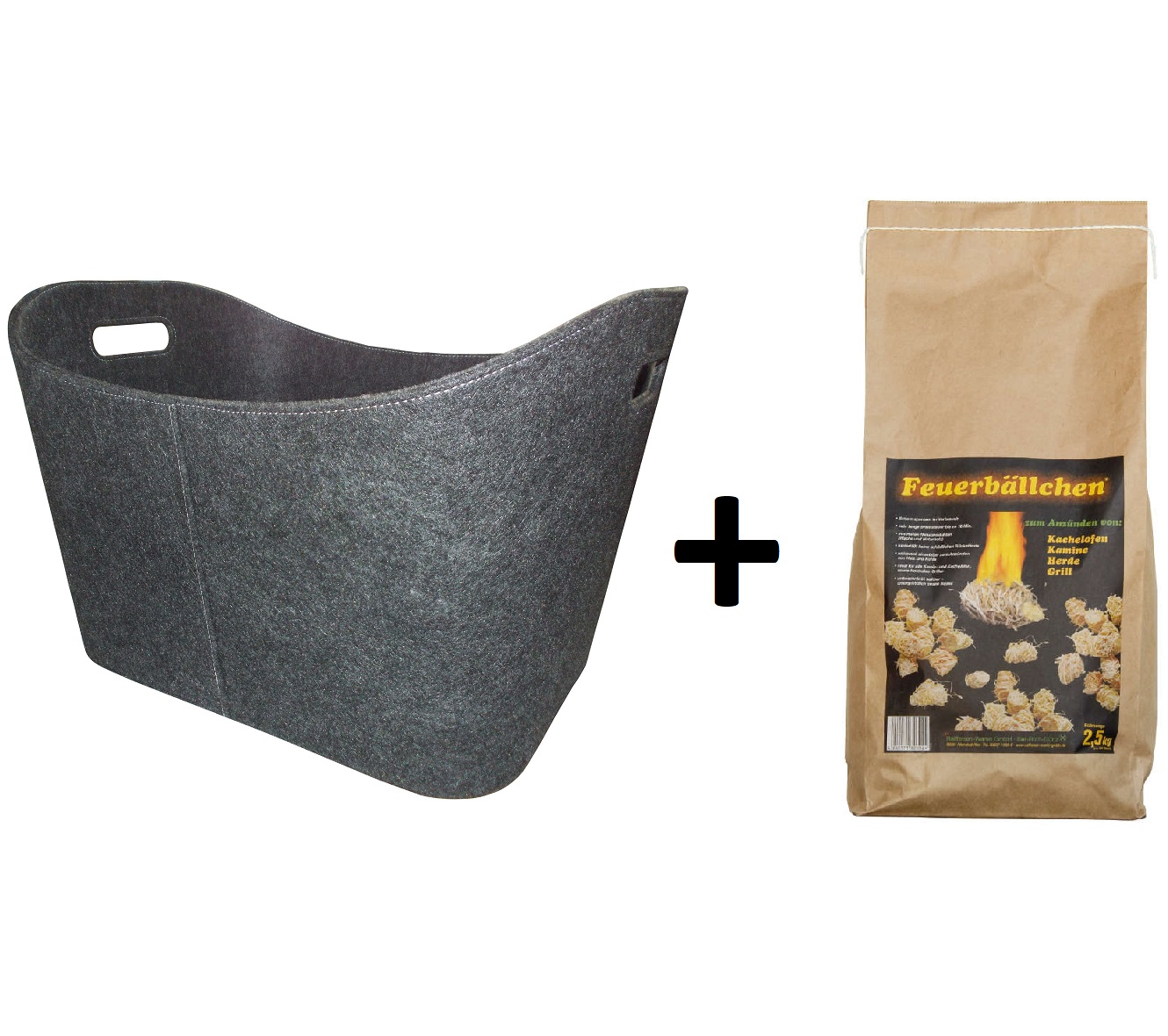 | Eigenschaften | Korb: ideal zum Transportieren und Aufbewahren von Holz geeignet, zeitloses Design, hochwertigem Filz, Feuerbällchen: Naturprodukten, extrem sparsam im Verbrauch, hinterlassen keine schädlichen Rückstände |
