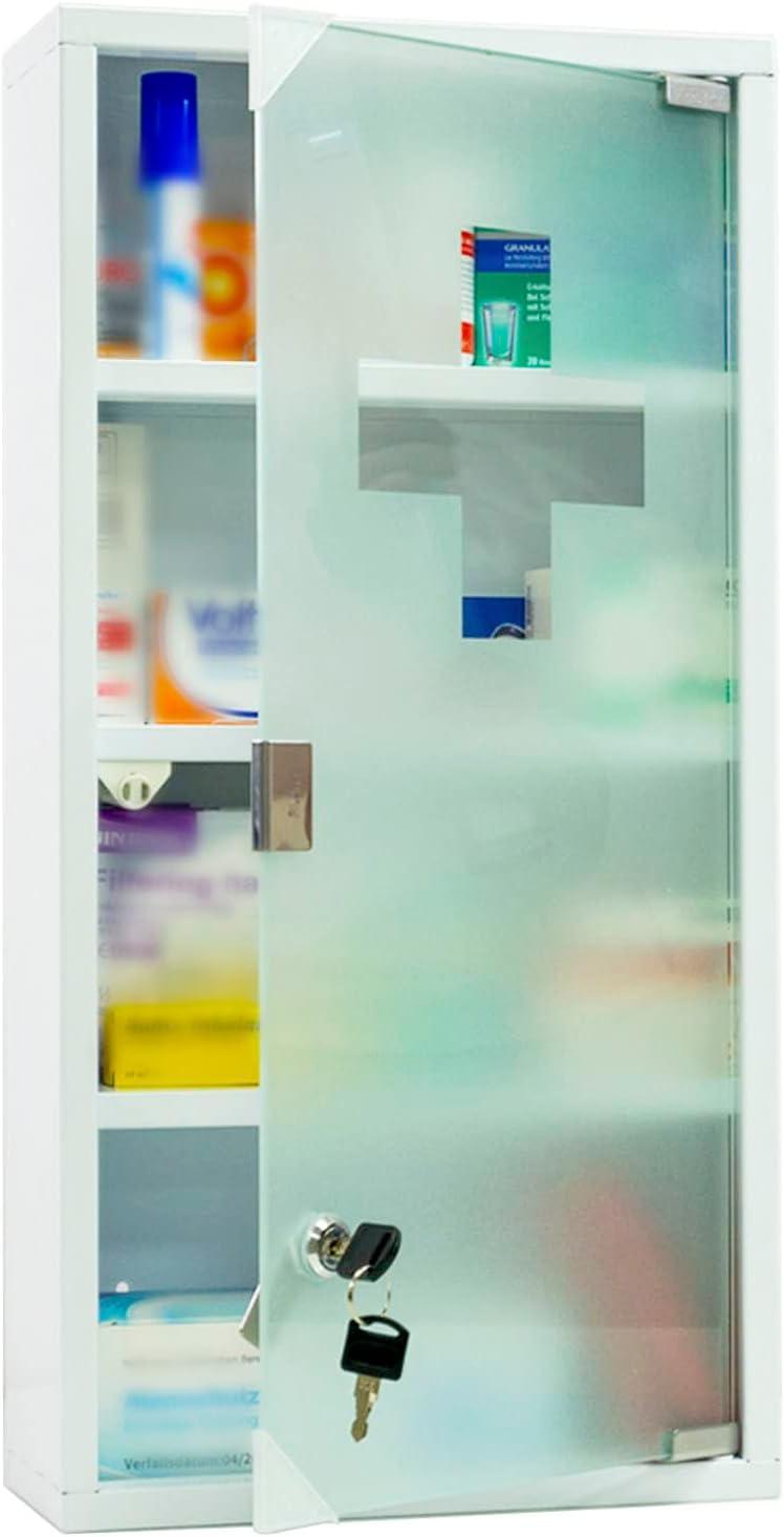 in ApothekerschränkeStyle home Medizinschrank Arzneischrank abschließbare Hausapotheke Erste Hilfe SchrankMetall Apothekerschrank mit Glastür, inkl. 2 Schlüsseln, 60 x 30 x 12 cm (Weiß, 4 Fächer)