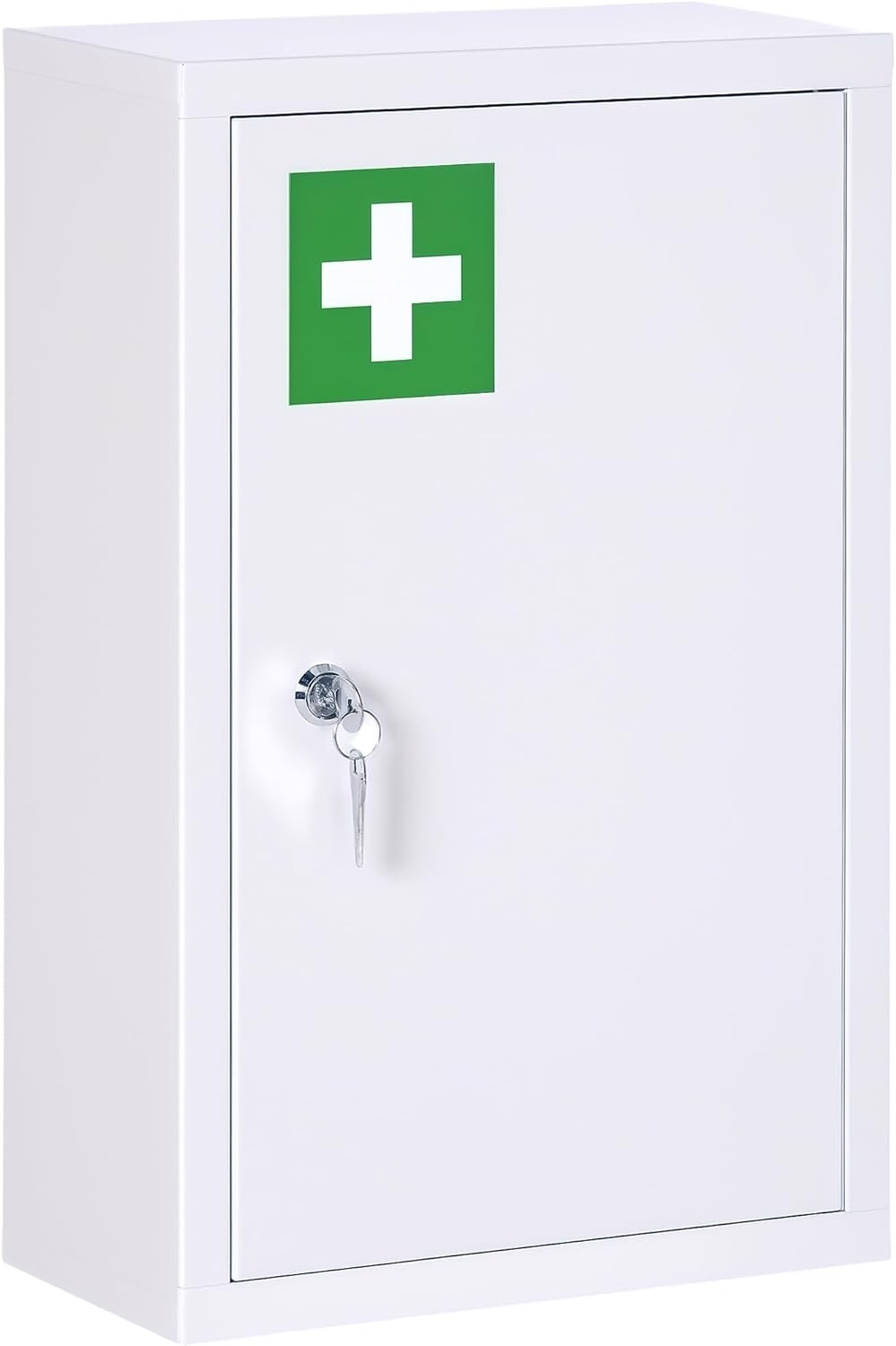 Der Kleankin Medizinschrank ist die perfekte Lösung für die sichere Aufbewahrung von Medikamenten in Haushalten mit Kindern und Haustieren. Mit drei praktischen Einlegeböden ermöglicht er eine übersichtliche Organisation. Der Arzneischrank aus weißem, kaltgewalztem Stahl ist platzsparend wandmontierbar und bietet ein sicheres Schließsystem mit zwei Schlüsseln für zusätzlichen Schutz. **Highlights** - 3-stufige Einlegeböden für effiziente Organisation - Sicheres Schließsystem mit zwei Schlüsseln - Aufkleber mit Erste-Hilfe-Kreuz für schnelle Erkennung - Platzsparende Wandmontage - Keine Montage erforderlich **Produkteigenschaften** - Farbe: Weiß - Material: Kaltgewalzter Stahl - Gesamtmaße: 30 x 14 x 46 cm - Türmaße: 25,5 x 42 cm - Maße je Fach: 29,5 x 12 x 14 cm, 29,5 x 12 x 14 cm, 29,5 x 12 x 16 cm (von oben nach unten) - Belastbarkeit: 15 kg (insgesamt), 5 kg (jedes Fach) **Lieferumfang** - 1 x Medizinschrank - 2 x Schlüssel
