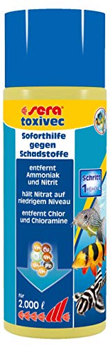 - Der sera toxivec Wasseraufbereiter entfernt sofort fischtoxisches Ammoniak und Nitrit, bindet Schwermetalle wie Blei und Kupfer und entfernt Chlor und Chloramine