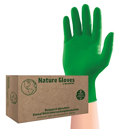 in ArbeitshandschuheAMPri Biologisch abbaubare Nitrilhandschuhegrün, 100 Stück/Box, Größe XL, puderfrei, Nature Gloves by Med-Comfort: Nitril Einmalhandschuhe in den Größen XS, S, M, L, XL erhältlich