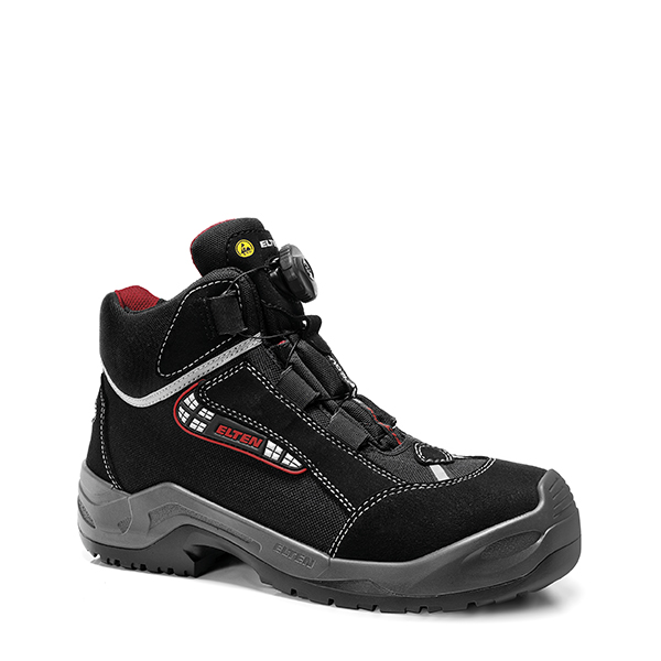 - Der Sicherheitsstiefel SANDER BOA® ESD S3 besteht aus hydrophobierter Mikrofaser und hydrophobiertem CORDURA®, die beide strapazierfähig sowie schmutz- und wasserabweisend sind.