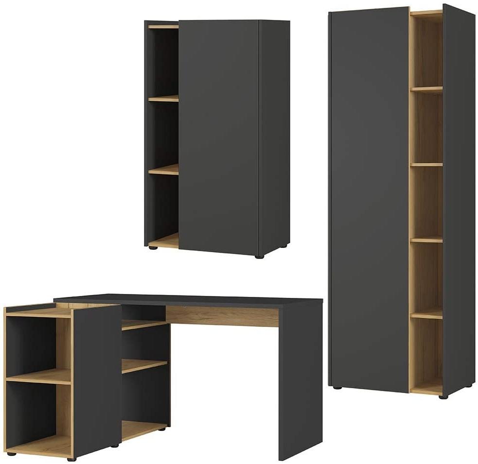 Germania 3-tlg. Büro-Set 8596-549 GW-Austin bestehend aus Schreibtisch und zwei Aktenschränken, im Dekor Graphit/Navarra-Eiche-Nb.