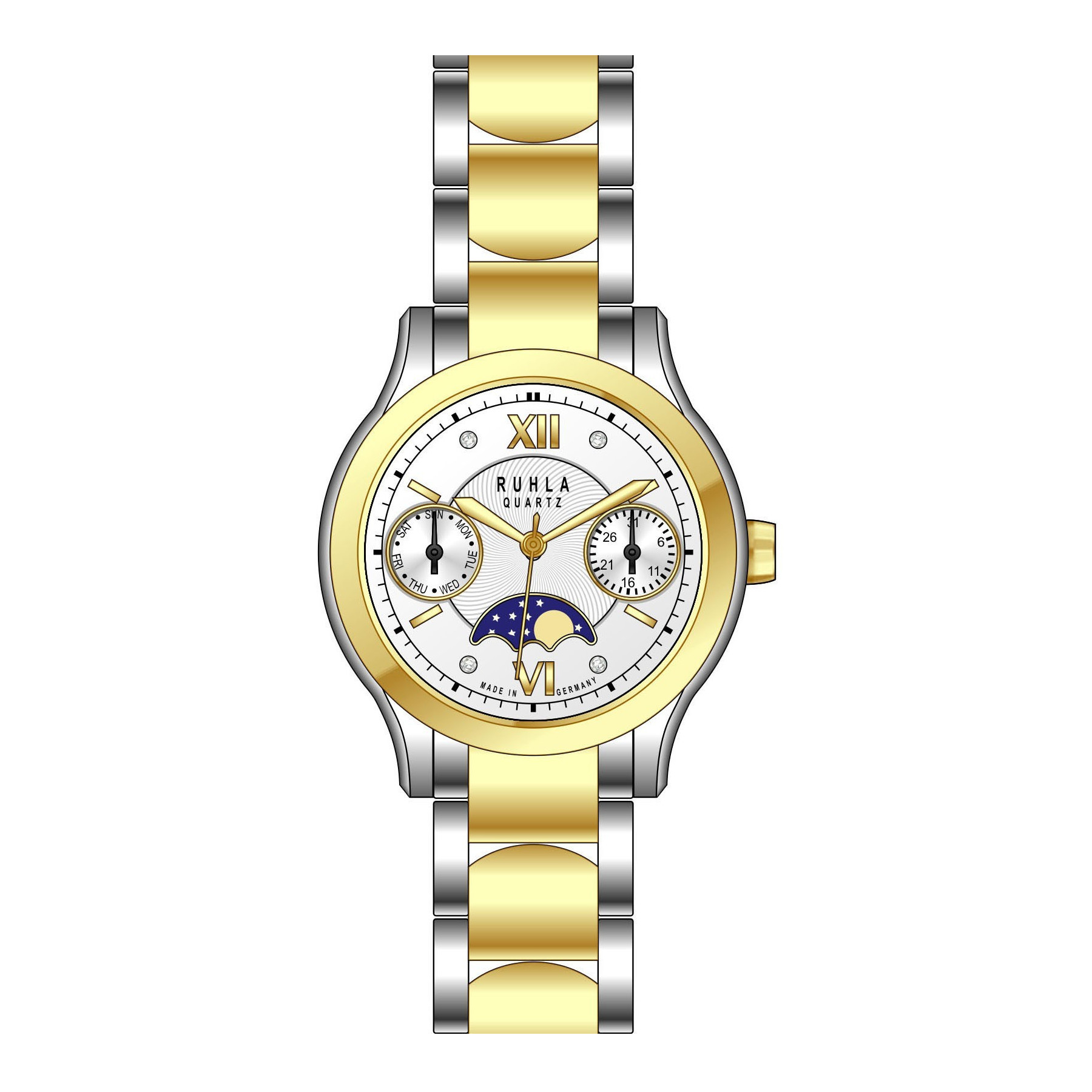 Ruhla Damen Armbanduhr Ruhla-Mondphase 50003 Edelstahl bicolorDatum Wochentag
