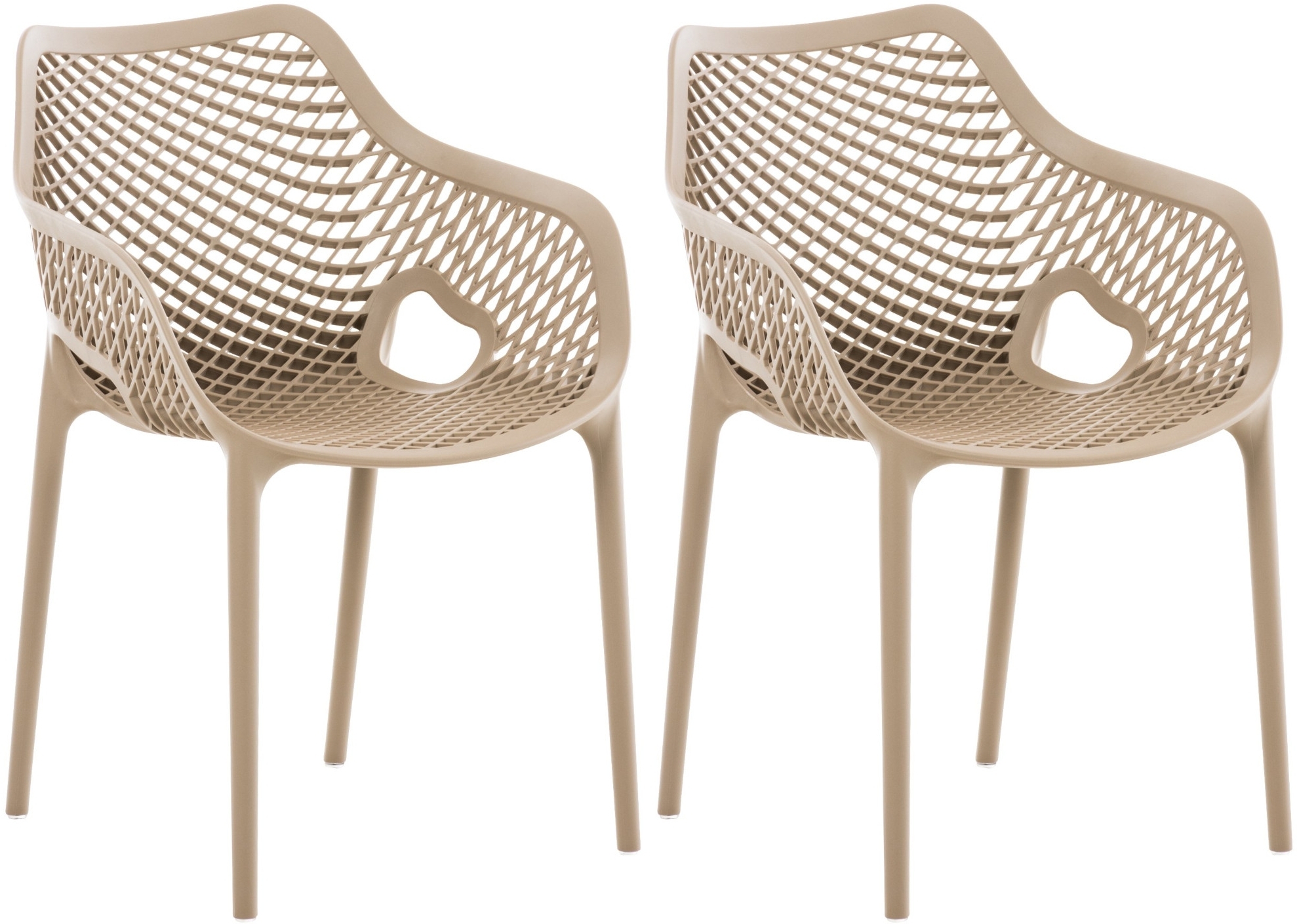 Die stapelbaren Stühle Air XL überzeugen durch ihr modernes Design mit einem ausgeklügelten Wabenmuster auf der Rückenlehne und Sitzfläche. Mit einer Sitzhöhe von 44 cm und einer hohen Rückenlehne bieten sie optimalen Sitzkomfort. Hergestellt aus robustem Polypropylen sind sie witterungs- und UV-beständig, was sie ideal für den Innen- und Außenbereich macht. **Highlights** - Modernes Design mit Wabenmuster - Hohe Rückenlehne und ergonomisch gewölbte Rücklehne - Stapelbar für platzsparende Aufbewahrung - Witterungs- und UV-beständig - Max. Belastbarkeit von 130 kg **Produkteigenschaften** - Gesamthöhe: 81 cm - Gesamtbreite: 57 cm - Gesamttiefe: 60 cm - Sitzhöhe: 44 cm - Gewicht: 4 kg - Material: Kunststoff (Polypropylen) - Stabiles Vierfußgestell - Wasserabweisend
