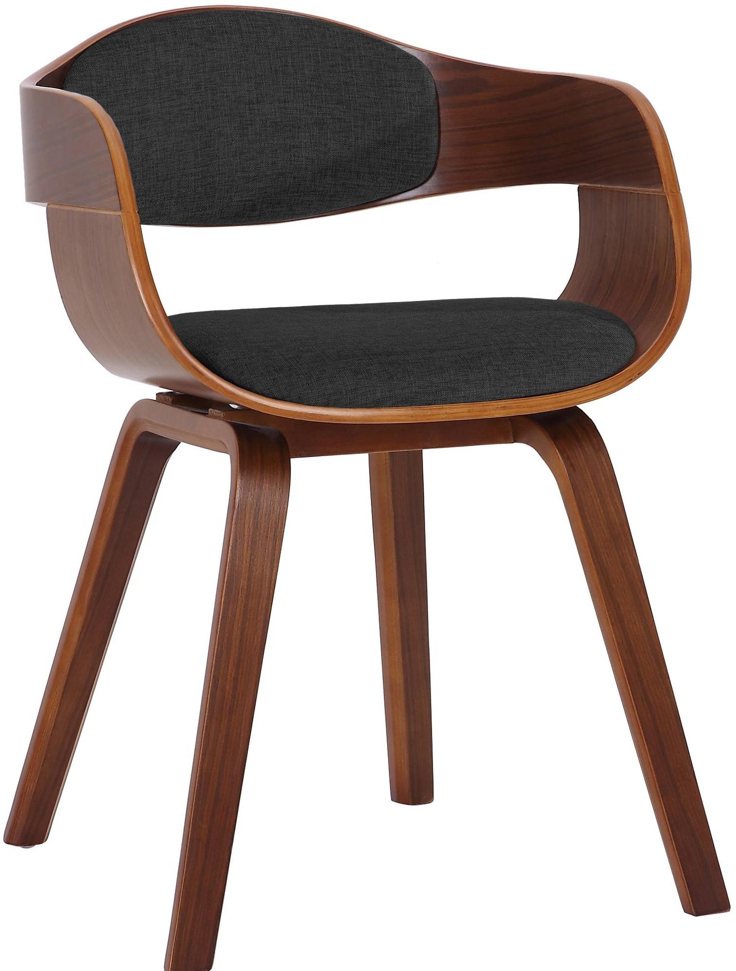 Der Armlehnenstuhl Kingston in walnuss/dunkelgrau vereint modernes Design mit hohem Komfort. Die großzügige Polsterung aus Stoff (100% Polyester) und die abgerundeten Arm- und Rückenlehnen sorgen für ein angenehmes Sitzgefühl. Mit einer Gesamthöhe von 73 cm, einer Gesamtbreite von 49 cm und einer Gesamttiefe von 46 cm bietet er Stabilität und Stil. Das stabile Holzgestell mit Vierfußkonstruktion garantiert sicheren Stand. **Highlights** - Modernes Design trifft auf optimalen Komfort - Stabile Konstruktion & strapazierfähiger Bezug - Großzügig gepolsterte Arm- und Rückenlehne - Stabiles Vierfußgestell für sicheren Stand - Angenehme Sitzhöhe von 48 cm **Produkteigenschaften** - Sitzbezug: Stoff (100% Polyester) - Gesamthöhe: 73 cm - Gesamtbreite: 49 cm - Gesamttiefe: 46 cm - Sitzhöhe: 48 cm - Sitzfläche: 43 x 43 cm - Höhe Armlehne: 21 cm - Material: Holz
