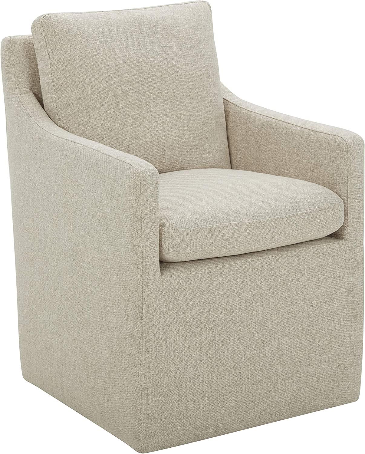 in ArmlehnenstühleAmazon-Marke Stone & Beam Vivianne Moderner gepolsterter Esszimmerstuhl mit Rollen62 cm breit, Grau (Linen)