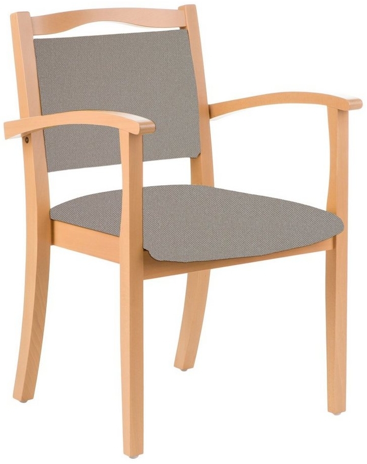 Der Armlehnstuhl Alexander ist ein eleganter 4-Fußstuhl aus massivem Buchenholz, der sich ideal für Esszimmer und Pflegeeinrichtungen eignet. Mit einer Breite von 57 cm, einer Höhe von 82 cm und einer Tiefe von 61,5 cm bietet er optimalen Komfort. Die hochwertige Polsterung und die gerundeten Armlehnen unterstützen das Aufstehen. Der Stuhl ist bis zu 120 kg belastbar und wiegt ca. 9,2 kg. Er wird montiert geliefert und ist stapelbar. **Highlights** - Gestell aus massivem Buchenholz für hohe Stabilität - Hochwertige Polsterung mit pflegeleichten Materialien - Unterstützung beim Aufstehen durch gerundete Armlehnenknaufe - Bis 120 kg durchgehend belastbar - Lieferung erfolgt in montiertem Zustand **Produkteigenschaften** - Maße (HxBxT): 82 x 57 x 61,5 cm - Sitzhöhe: 47 cm - Gewicht: ca. 9,2 kg - Strapazierfähige Lackierung für gewerbliche Nutzung - Gleiter für einfaches Verschieben auf verschiedenen Böden **Lieferumfang** - 1 Stk Stuhl Alexander mit Armlehnen - Lieferung erfolgt in montiertem Zustand