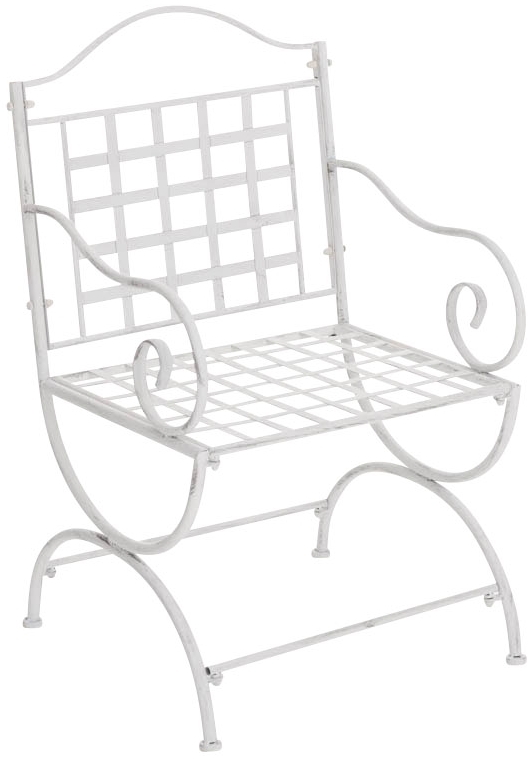 Dieser wunderschöne Stuhl Lotta im nostalgischen Design ist ein echter Hingucker für Terrasse und Garten. Handgefertigt aus stabilem Eisen und veredelt mit einer antiken Patina, bietet er mit einer Gesamthöhe von 92 cm, einer Gesamtbreite von 56 cm und einer Gesamttiefe von 53 cm einen bequemen Sitzplatz. Die Sitzhöhe beträgt 43 cm, die Sitztiefe 43 cm und die Rückenlehne hat eine Höhe von 51 cm. **Highlights** - Nostalgisches Design: Ein Stuhl im romantischen Stil vergangener Zeiten. - Handgefertigte Verzierungen: Liebevoll gestaltete Details machen den Stuhl zu einem echten Blickfang. - Stabile Konstruktion: Aus Eisen gefertigt, bietet der Stuhl eine hohe Stabilität. - Antike Patina: Die Oberfläche ist mit einer handgefertigten antiken Patina veredelt. - Perfekte Ergänzung: Der Stuhl passt ideal zu allen Metalltischen in unserem Shop. **Produkteigenschaften** - Material: Eisen - Farbe: antik weiß - Gesamthöhe: 92 cm - Gesamtbreite: 56 cm - Gesamttiefe: 53 cm - Sitzhöhe: 43 cm - Sitztiefe: 43 cm - Höhe Rückenlehne: 51 cm - Rohrdurchmesser: 2 cm **Lieferumfang** - Stuhl Lotta im antik weißen Design - Lieferung in teilezerlegtem Zustand