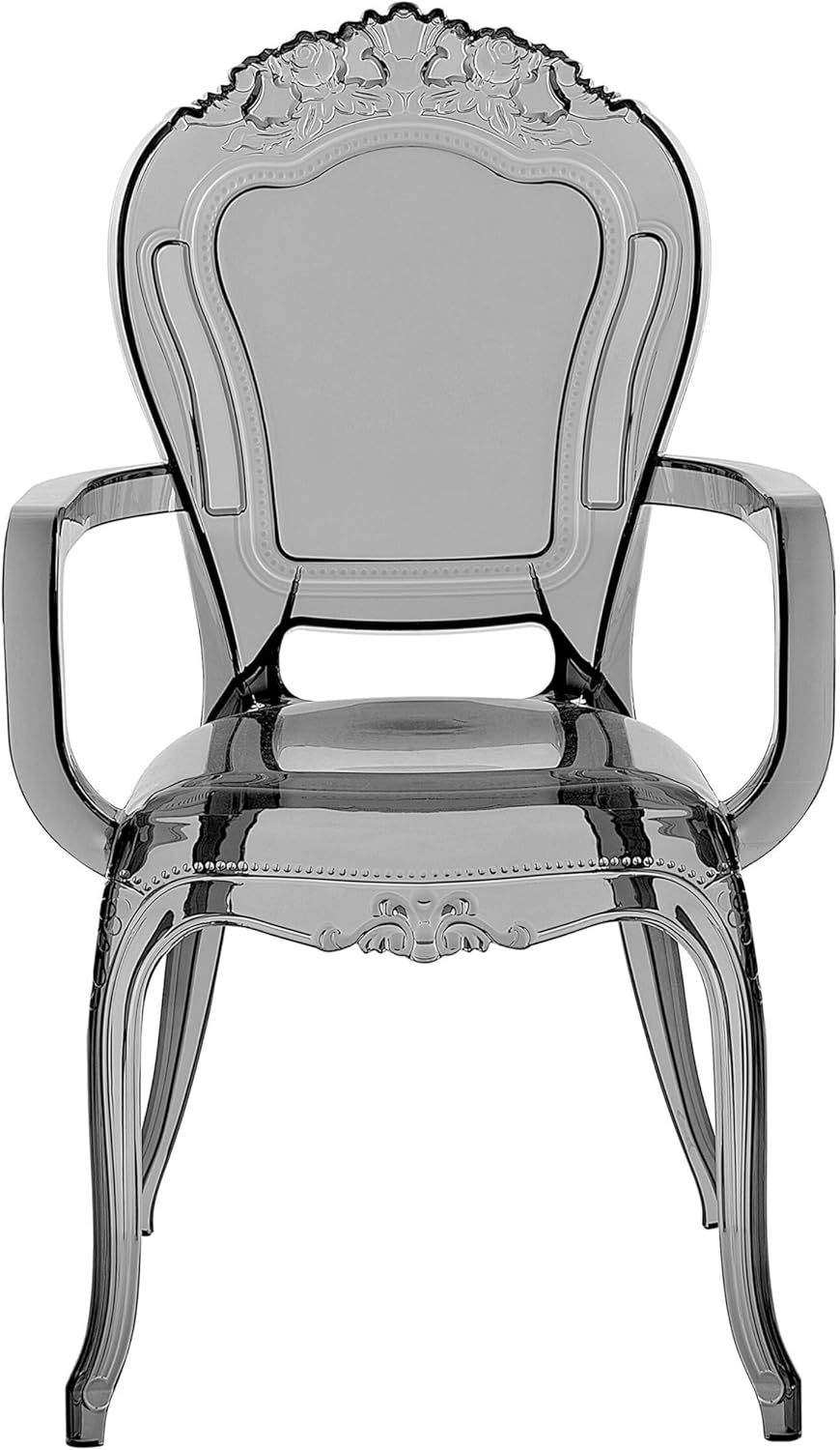 Transparente Stühle im 2er Set mit klassischem Design. Die geschwungene Form und schlanken Beine aus hochwertigem Polycarbonat verleihen den Stühlen eine moderne Note. UV-beständig, robust und pflegeleicht, sind sie ideal für verschiedene Einrichtungsstile. Mit einer maximalen Belastung von 200 kg und einem Gewicht von nur 5 kg sind sie sowohl dekorativ als auch funktional. **Highlights** - Zeitloses Design: Passt zu modernen und klassischen Einrichtungsstilen. - Hohe Qualität: Hergestellt aus robustem Polycarbonat. - Besonders pflegeleicht: Einfache Reinigung mit milden Reinigungsmitteln. - Platzsparend stapelbar: Ideal für kleine Räume. - Perfekt geformte Armlehnen: Bieten zusätzlichen Komfort. **Produkteigenschaften** - Typ: Bankettstuhl - Stil: Modern - Farbe: Schwarz - Gestellfarbe: Schwarz - Material: Polycarbonat - Gestellmaterial: Kunststoff - Sitzmaterial: Kunststoff - Armlehnen: Ja - Finish: Glänzend - Abmessungen: - Höhe Armlehnen: 67 cm - Tiefe: 53 cm - Sitzhöhe: 45 cm - Breite: 52 cm - Höhe: 98 cm - Sitzfläche: 43x42 cm - Gewicht: 5 kg - Max. Belastung: 200 kg - Montage: Benötigt keine Montage **Lieferumfang** - 2 x Stühle