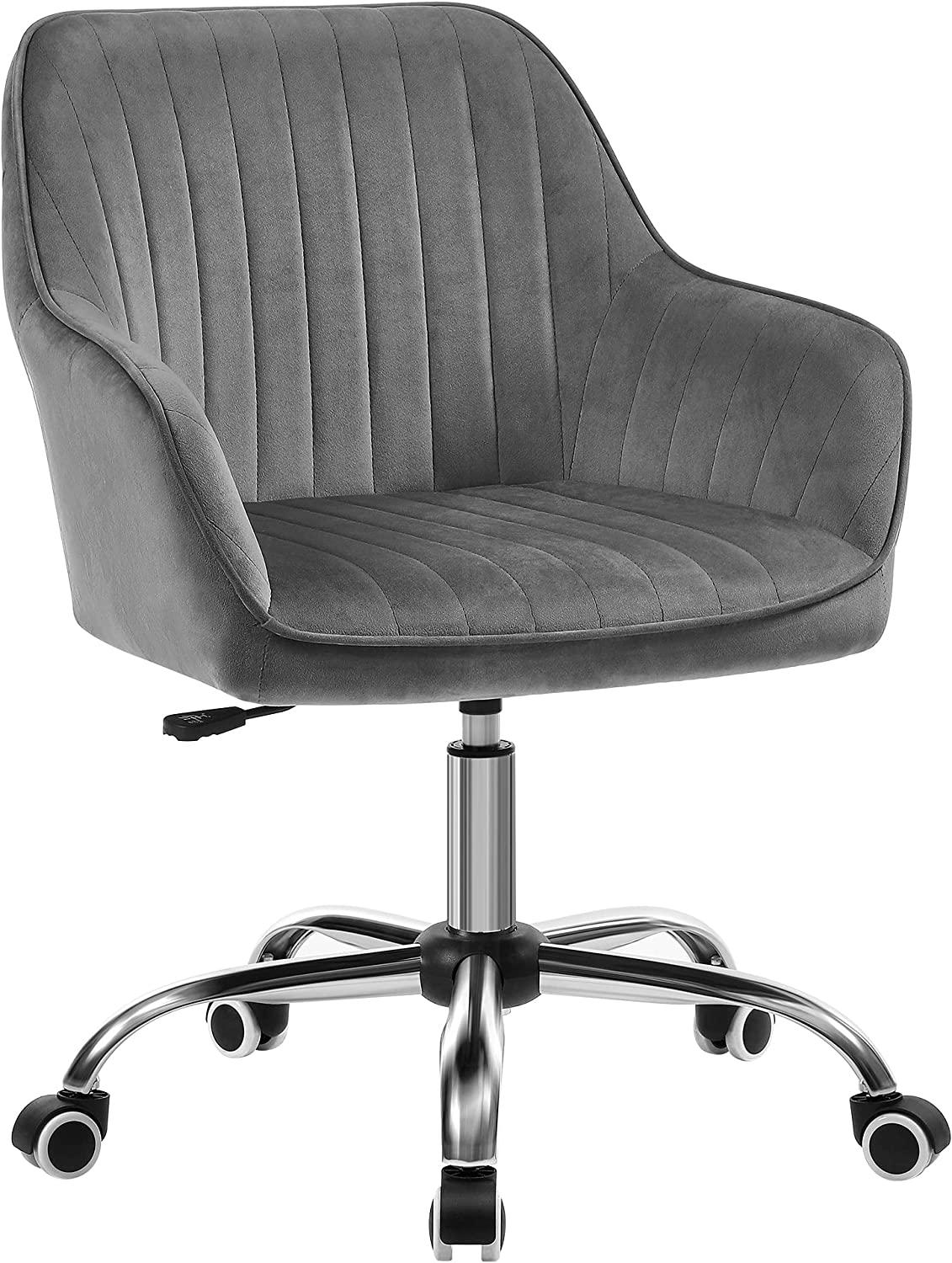 Black Deal in ArmlehnenstühleSONGMICS BürostuhlDrehstuhl mit Samtbezug, Schaumstoffpolsterung, höhenverstellbar, für Arbeitszimmer, Bar, hellgrau OBG012G01