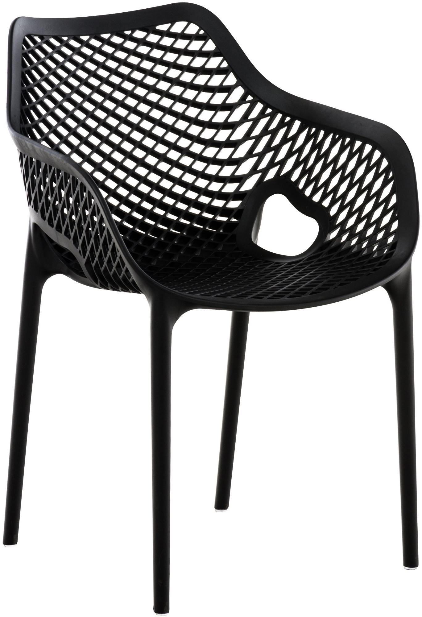 Der CLP Stuhl Air XL ist ein stilvoller und praktischer Stapelstuhl mit einem modernen Wabenmuster. Mit einer Sitzhöhe von 44 cm und ergonomischen Arm- und Rückenlehnen bietet er hohen Sitzkomfort. Hergestellt aus robustem Polypropylen, ist er sowohl für den Innen- als auch für den Außenbereich geeignet. Dank seiner stapelbaren Bauweise lässt er sich platzsparend lagern und ist ideal für Garten, Terrasse oder Wohnräume. **Highlights** - Schicker Stapelstuhl mit Wabenmuster - Geeignet für Wohnbereich, Garten und Terrasse - Ergonomische Form für bequemes Sitzen - Platzsparend stapelbar - Wasserabweisend und UV-beständig **Produkteigenschaften** - Farbe: Schwarz - Gesamthöhe: 81 cm - Gesamtbreite: 57 cm - Gesamttiefe: 60 cm - Sitzhöhe: 44 cm - Max. Belastbarkeit: 130 kg - Gewicht: 4 kg - Sitzmaterial: Kunststoff (Polypropylen) - Gestellmaterial: Kunststoff (Polypropylen) - Stabiles Vierfußgestell - Großzügige Arm- und Rückenlehne - Ergonomisch gewölbte Rückenlehne für besseren Sitzkomfort